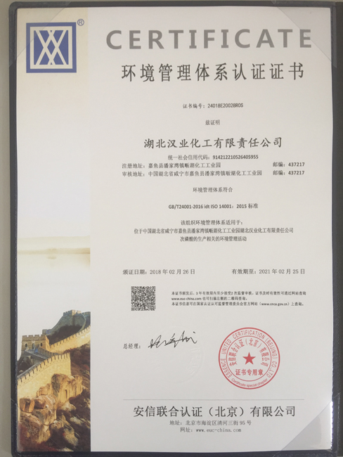 環(huán)境管理體系認(rèn)證證書(shū)